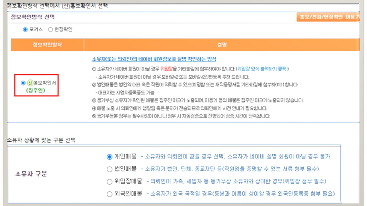 ①물건 등록 시 입력한 소유자의 정보(이름, 전화번호)와 네이버 회원정보가 불일치 한 경우