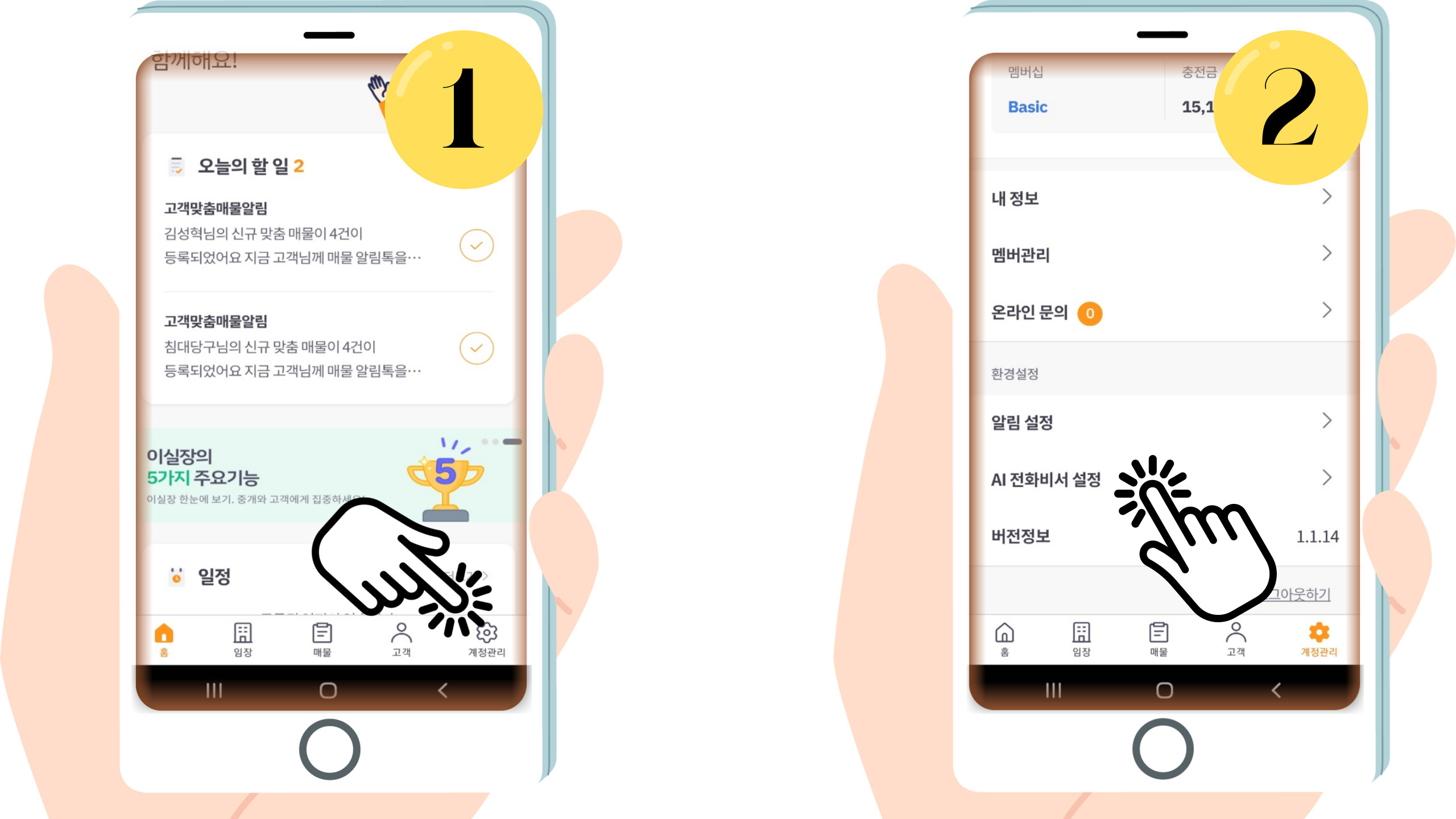 기존 - 모바일을 통해 기존 임장도우미 만기알람, 거래알람, 매물변동 알람 등과 AI전화비서 기능 위주로 사용