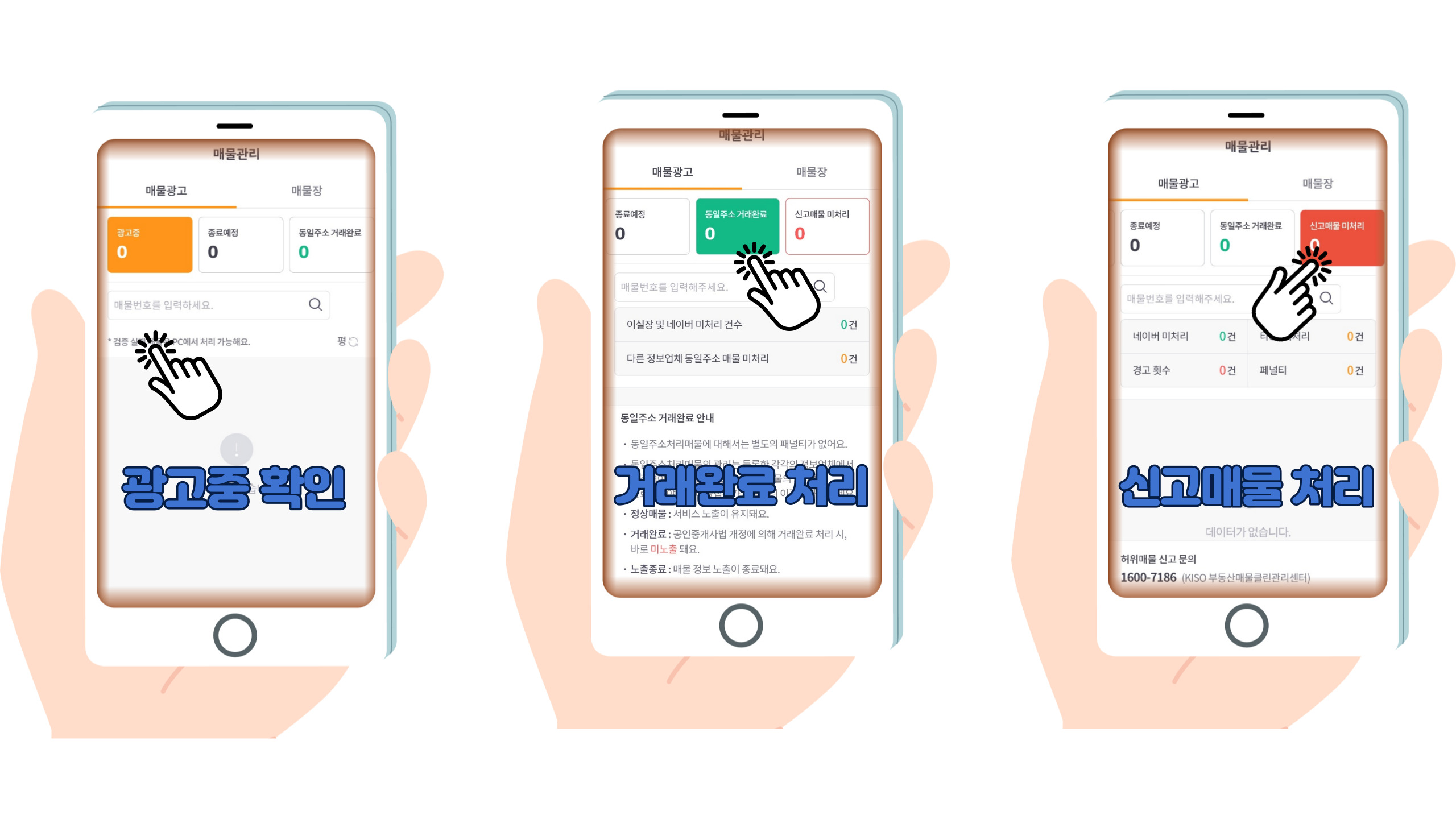 (광고매물 확인, 거래완료, 노출종료, 동일주소 거래완료, 신고매물 미처리)