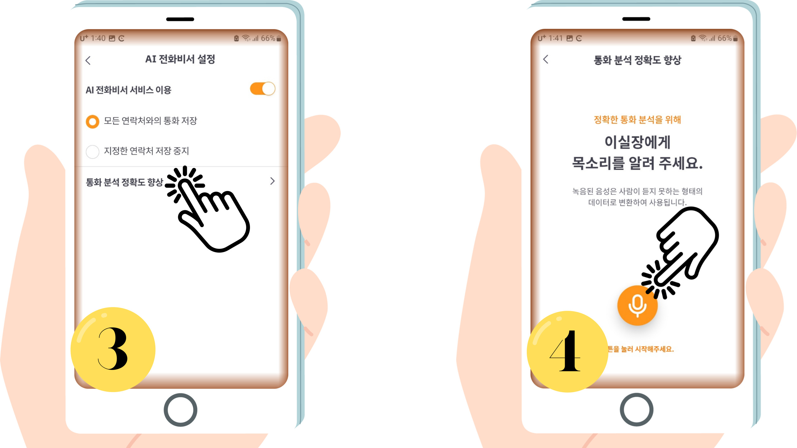 AI전화비서의 분석 정확도가 나날이 늘어나고 있으며 화자인증(본인 목소리 등록)이 추가되었습니다.