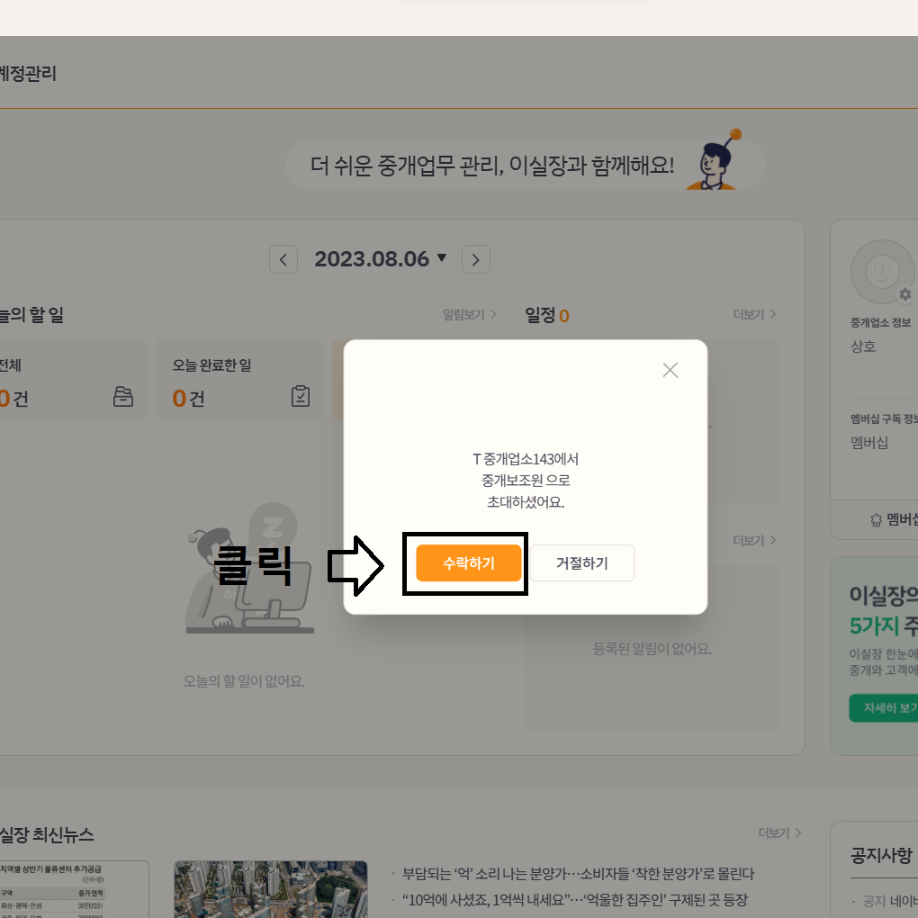공인중개사 사장님들이 이실장을 가입하면 네이버 매물등록은 물론 부가서비스인 멤버 초대기능으로 소속 공인중개사나 중개보조인 등을 초대하여 매물 광고를 쉽게 관리할 수 있습니다.