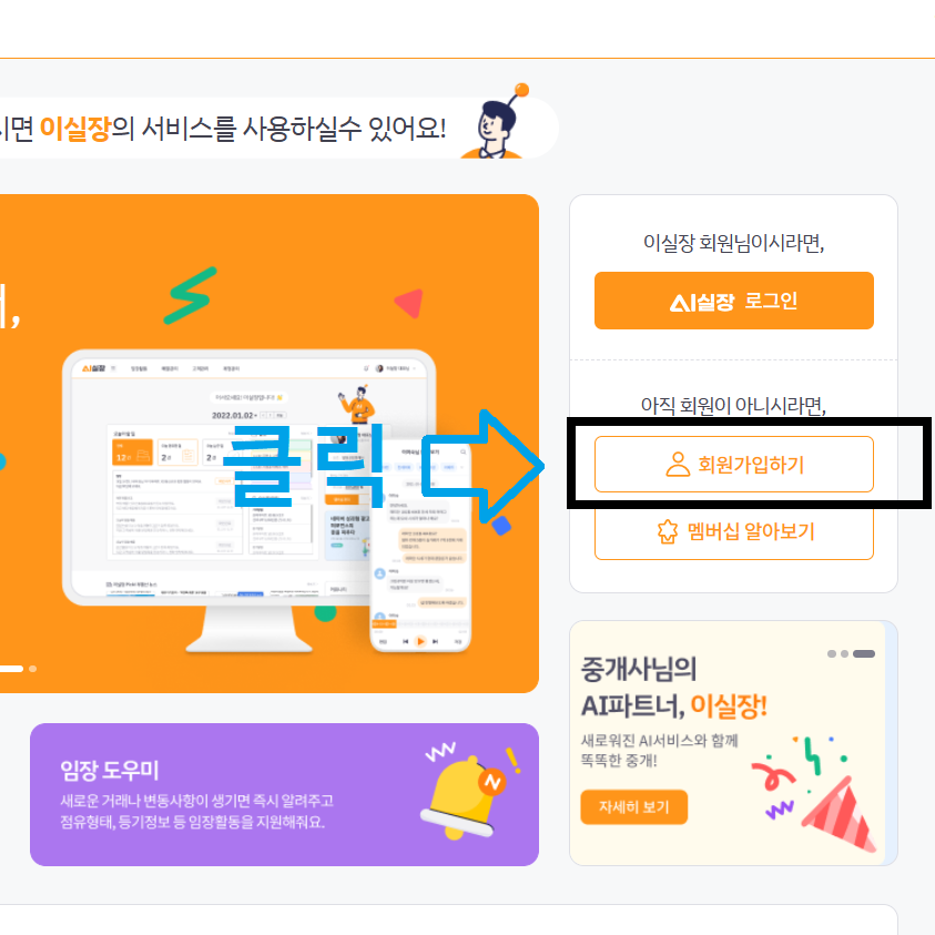 1. 이실장 메인 페이지에서 회원 가입하기를 누릅니다.