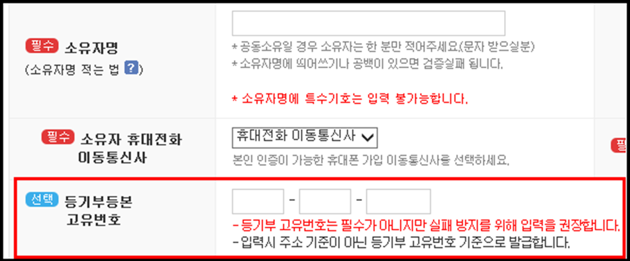 3. 등기고유번호 입력이 필요한 경우