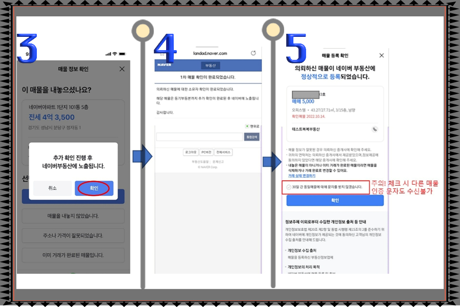 3) 검증센터에서 직접 검증 후 노출되므로 매물 접수 마감시간 전에 등록해야 당일 노출됩니다