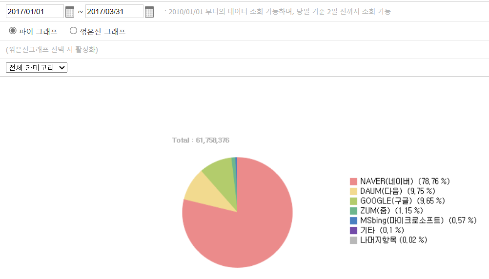 6년 만에 네이버가 점유율이 21% 정도 하락하였고 구글이 23% 정도 상승하였습니다.