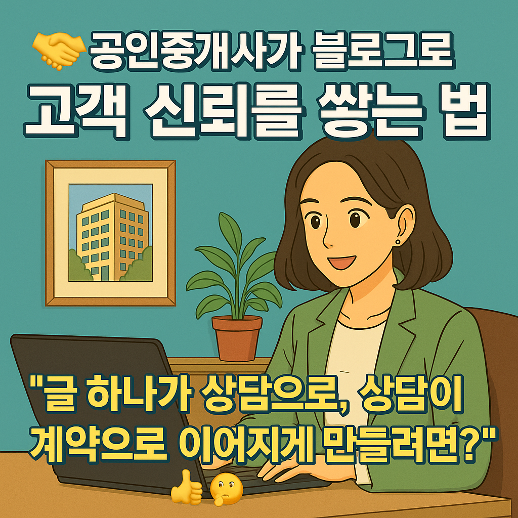 | 👩💻 1인 공인중개사사무소, 어떻게 하면 더 신뢰받을 수 있을까요? (4) | 2025.05.06 |