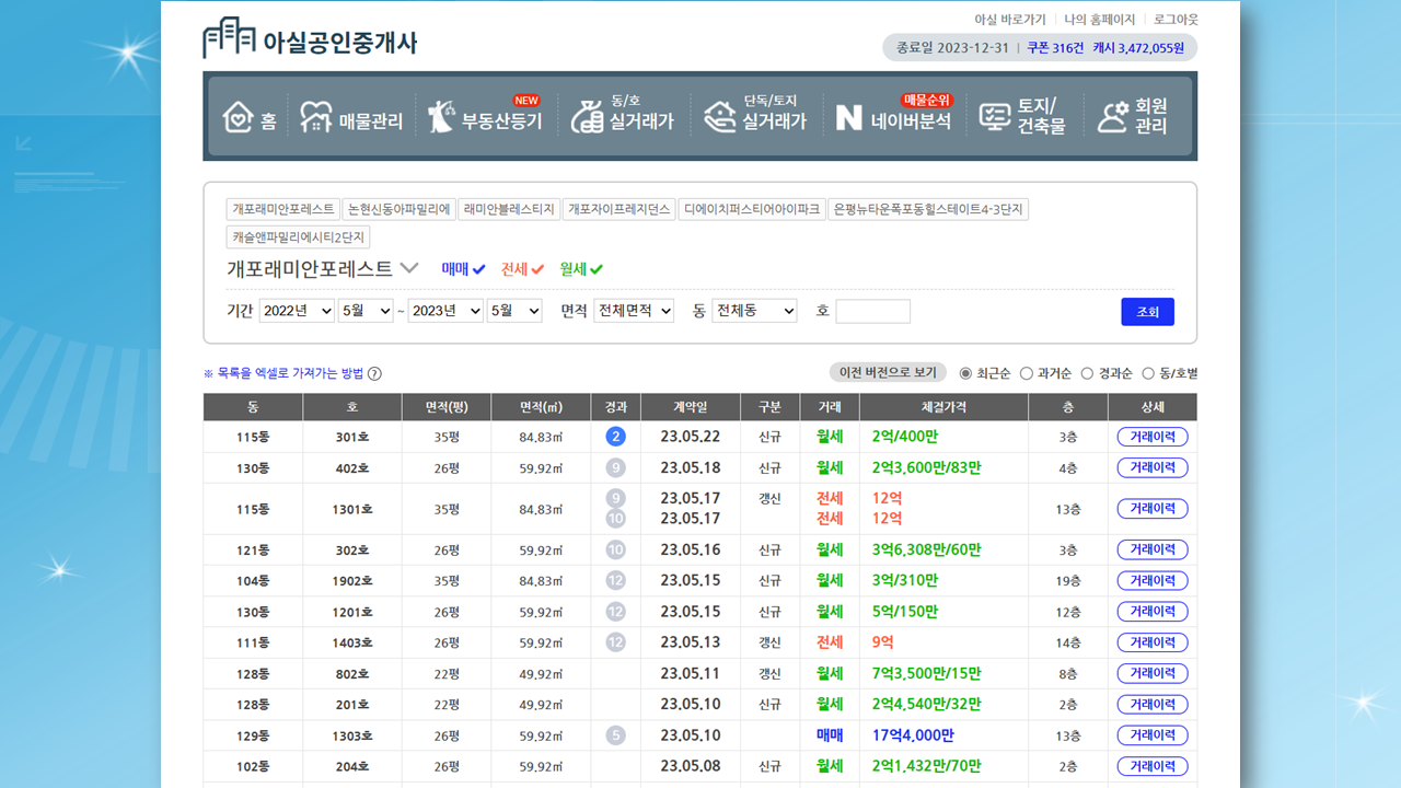 3. 전국 모든 매물의 거래이력을 한눈에 확인