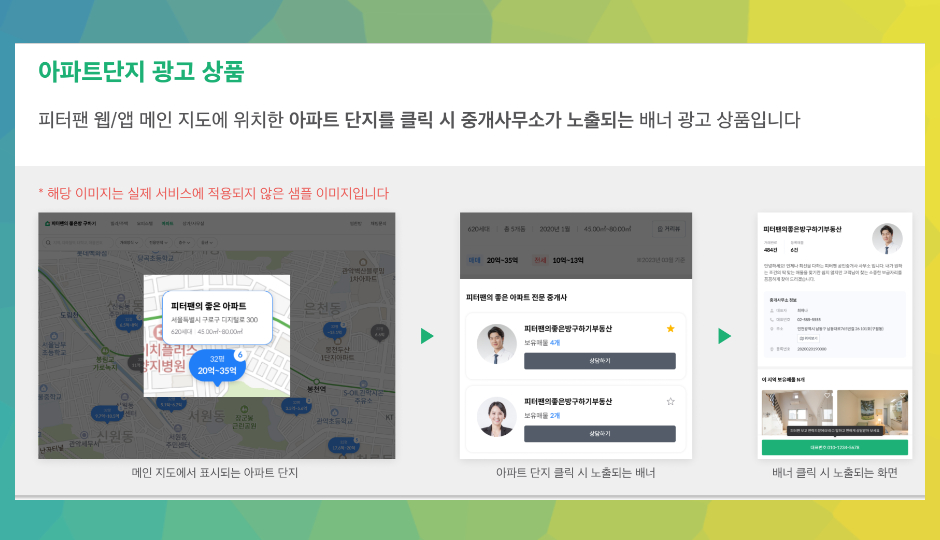 네이버부동산 공식 CP사 피터팬 좋은방구하기 플랫폼에 소비자와 공인중개사 사장님들을 위한 아파트단지 광고 상품이 2023년 10월 추가됩니다. (2023년 8월, 2023년 9월 사전계약 할인 중)